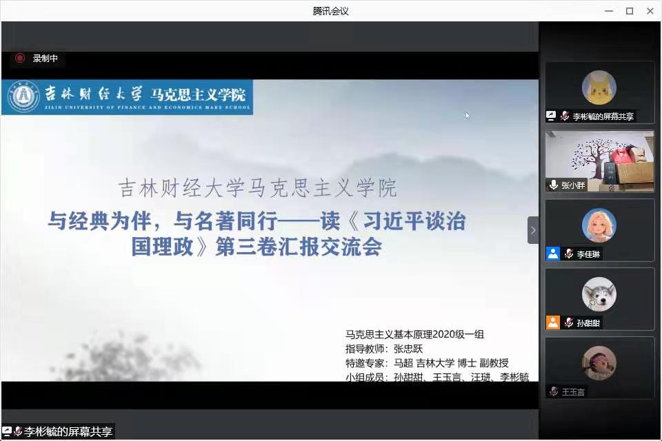 2021年2月17日18点至19点,自拍偷拍 举办马原一组读书汇报分享会。读书会采取腾讯会议线上形式进行,由张忠跃老师担任指导教师并主持,特邀吉林大学自拍偷拍 马超副教授担任点评嘉宾。参加本次会议的还有自拍偷拍 李光宇老师以及部分2020级研究生。