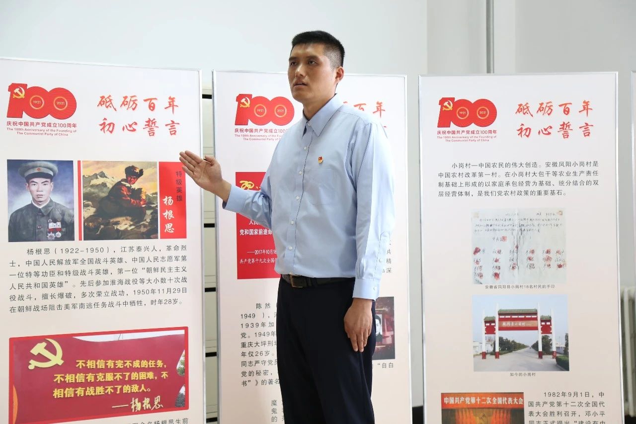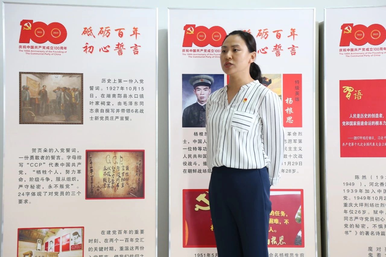在宣誓仪式前,学院四名教师对党的百年征程进行了简要回顾,展现了在新时代以习近平同志为核心的党中央坚强领导下,党和国家各项事业取得的历史性成就、发生的历史性变革。刘方、梁策、吕敏、胡婷婷老师分别讲述了入党誓词的起源及历史介绍、英雄人物杨根思、陈然在苦难和斗争中,守护初心,舍生忘死的感人事迹、以小岗村脱贫为例简述我国脱贫攻坚的显赫成果以及中国天眼、“祝融号”、港珠澳大桥等中国发展的“名场面”,内容详实,娓娓动听。