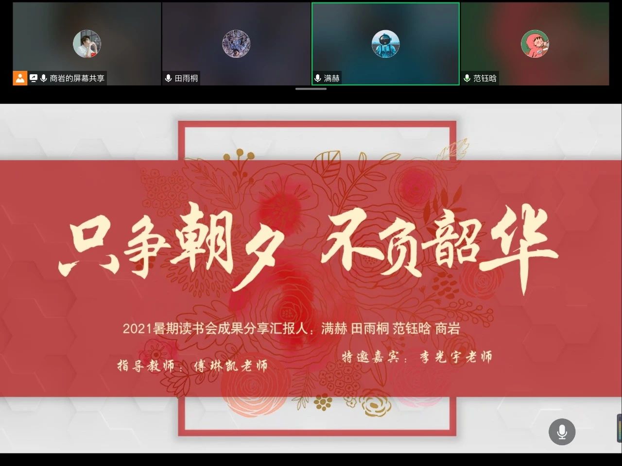 2021年8月22日,自拍偷拍 研究生举办第九期读书汇报分享会。此次读书会由傅琳凯老师担任指导教师,李光宇老师担任点评嘉宾,读书会采取腾讯会议线上形式进行。