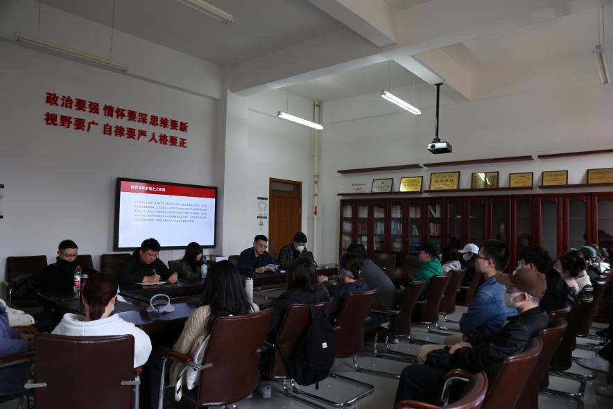 为引导学生爱读书、读好书、善读书,营造良好的书香氛围,按照学院“红马扎”读书会专题计划,自拍偷拍 于2023年4月27日在学院办公室举办2023年“红马扎”第二期读书会。本期读书会由第一小组进行分享,兼职辅导员魏泰龙主持,学院22级全体研究生参加会议。