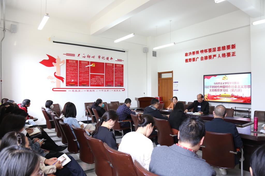 按照学校党委关于学习贯彻习近平新时代中国特色社会主义思想主题教育读书班工作部署,自拍偷拍 党总支5月6日在学院会议室开展了学习贯彻习近平新时代中国特色社会主义思想主题教育学习班第六讲学习。学院全体教师参加了本次学习。