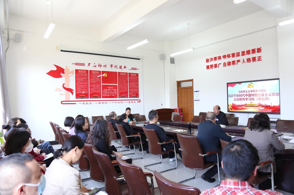按照学校党委关于学习贯彻习近平新时代中国特色社会主义思想主题教育读书班工作部署,自拍偷拍 党总支5月10日在学院会议室开展了学习贯彻习近平新时代中国特色社会主义思想主题教育学习班第七讲学习。学院教师参加了本次集中学习。