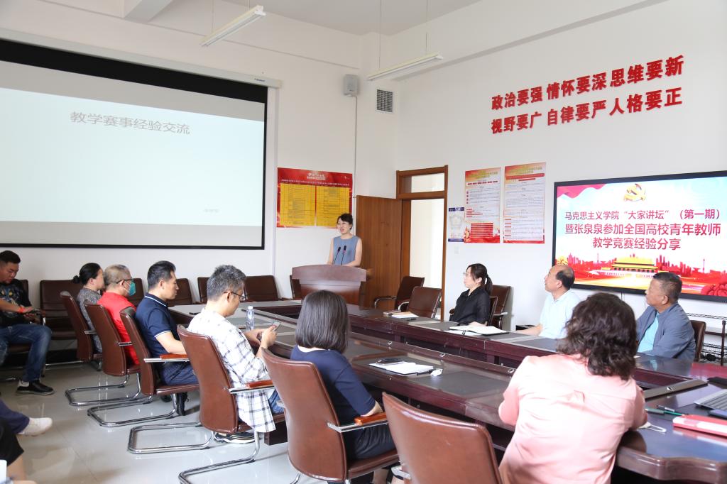 为深入学习贯彻落实党的二十大精神,坚持立德树人根本任务,发挥好思政课教师队伍的主力军、课程建设的主阵地、课堂教育的主渠道作用,自拍偷拍 结合学习贯彻习近平新时代中国特色社会主义思想主题教育,6月14日在学院会议室举办“大家讲坛”(第一期)暨张泉泉参加全国青年教师教学竞赛经验分享交流会,学院全体教师参加了会议,交流会由学院党总支副书记、副院长张立畅主持。