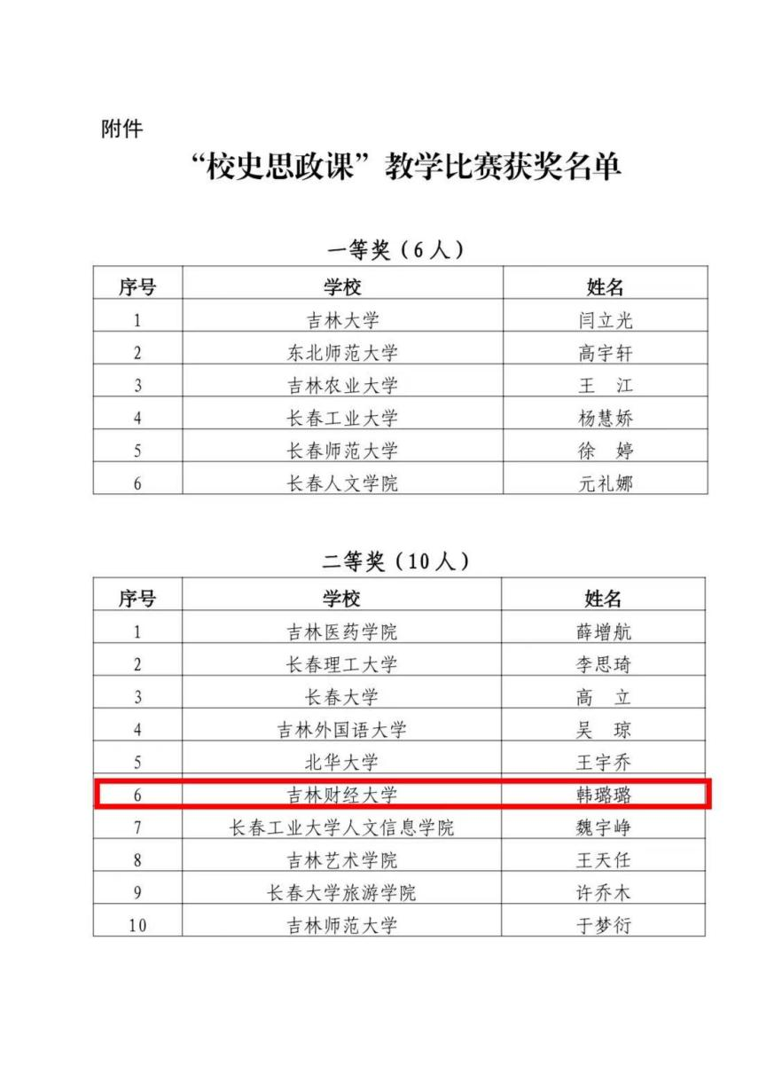 近日,从吉林省教育厅《关于公布校史思政课教学比赛结果的通知》获悉,自拍偷拍 韩璐璐荣获吉林省“校史思政课”教学比赛二等奖。