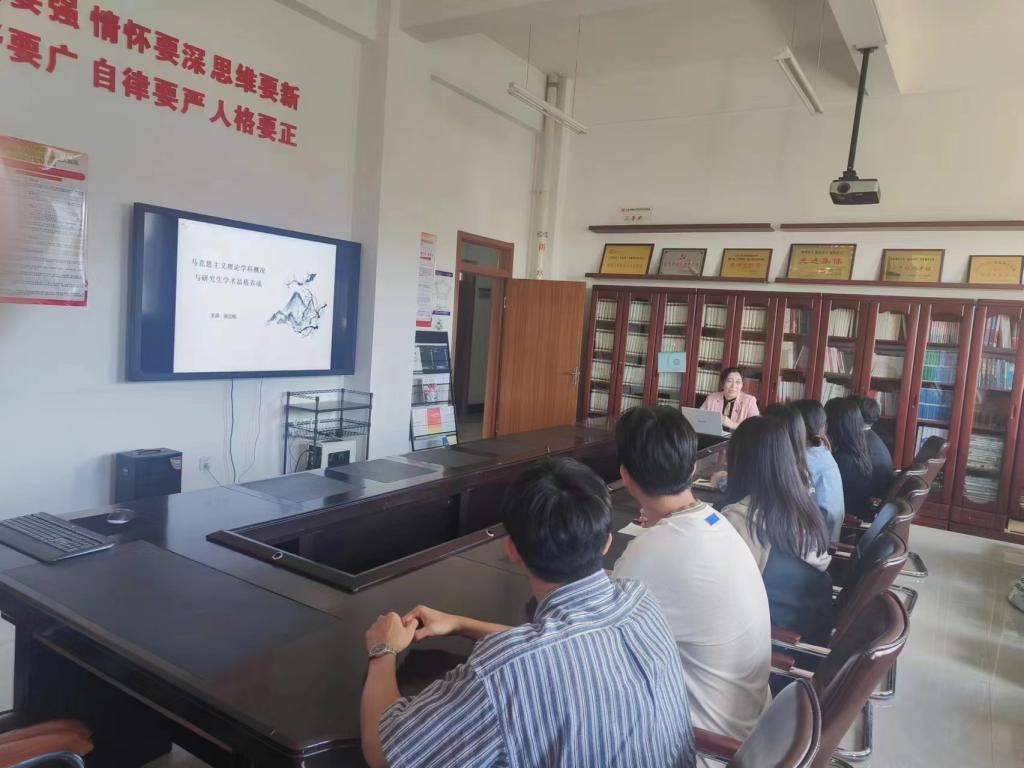 9月12日下午,在学院会议室,张立畅副院长为2023级研究生新生作了《马克思主义理论学科概况与研究生学术品格养成》的入学教育报告。她首先介绍了马克思主义理论学科的特点及重要性,使同学们了解了马克思主义理论作为科学理论对实践的重大指导意义,并指出身为自拍偷拍 的研究生应感责任重大、使命光荣。随后她从硕士研究生学业时间安排、硕士研究生学位论文的研究选题与研究问题、硕士研究生要养成的两种品格、学术人格与治学境界四个方面进行了详细解读。她在报告中指出,硕士研究生要养成两种受用一生的品格:求知欲上的热度与认真做事、回归初心的态度;未来同学们在学术道路上,应该努力做到四个“真”字:真诚、真实、真切、真理;要具备三个“积累”:文献积累、思想积累、生活积累;要具备四个“气”:大气、正气、勇气、“霸气”。最后,她勉励同学们要精研理论、践履所学,立志做有理想、敢担当、能吃苦、肯奋斗的新时代青年马克思主义者。