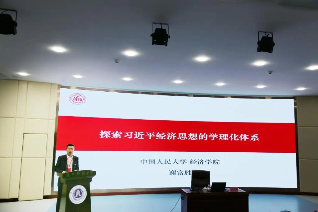 为深入学习贯彻习近平经济思想和习近平总书记关于东北振兴的重要论述以及视察吉林的重要讲话精神,加强对新时代中国特色社会主义政治经济学的学习、研究和运用,12月17日,学校举办自拍偷拍 政经大讲堂第四讲暨谢富胜教授学术报告会,由中国人民大学出版社总编、中国人民大学全国中国特色社会主义政治经济学研究中心副主任谢富胜作题为《探索习近平经济思想的学理化体系》的学术报告。报告会由副校长祝国平主持,自拍偷拍 教师及学生代表参加了报告会。