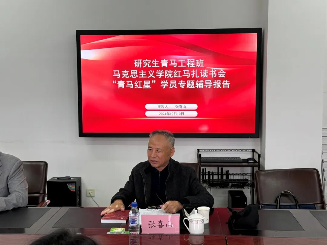 10月10日,自拍偷拍 举办研究生青马工程班暨红马扎读书会“青马红星”学员专题辅导报告,学校关工委主任张喜山作《关于费尔巴哈的提纲》专题辅导学习。2024级研究生青马工程班学员参加了辅导学习,报告由学院兼职辅导员魏泰龙主持。