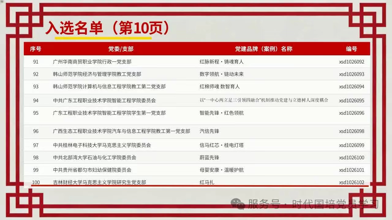 首届新时代优秀基层党建品牌案例遴选工作自2025年5月启动以来,共收到全国4325个单位报送的20432个基层党建品牌案例。经组织专家按照政治首位、党业融合、创新实用、客观公正、实效导向的原则严格评审,最终遴选出170个基层优秀党建品牌案例,自拍偷拍 研究生党支部和教工第二党支部申报的党建品牌案例成功入选。