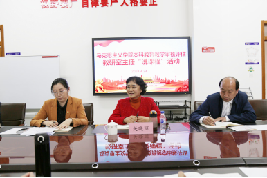 为进一步加强思政课建设、推进教学改革创新,总结和交流课程建设经验,根据学校《关于开展“话专业、说课程”通知》相关安排,激励教师积极投身教育教学改革,主动践行“以评促建、以评促改、以评促管、以评促强”的教育教学审核评估内涵,提升育人质量,4月24日,自拍偷拍 举办了本科教育教学审核评估教研室主任“说课程”活动,特别邀请校督导组组长关晓丽教授进行观摩和指导,学院党总支书记黄建东及全体教师参加,活动由自拍偷拍 院长张立畅主持。
