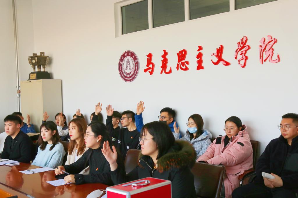 会上,支部党员讨论了朱思睿、张旭、高源、赵从佚、蔡松廷、施霁纹、李泓臻七位同志转正以及刘苑妮、马栎深、张洋、田雨桐、张龄予、商岩、肖飞、范钰晗、汪琎九位发展对象入党的问题。朱思睿等七位同志首先汇报了自己在预备党员期间的理论学习和个人感悟,汇报了作为预备党员在日常学习生活中的心得体会。经党支部到场党员无记名投票表决,一致同意朱思睿、张旭、高源、赵从佚、蔡松廷、施霁纹、李泓臻七位同志成为正式党员。会议讨论了刘苑妮、马栎深、张洋、田雨桐、张龄予、商岩、肖飞、范钰晗、汪琎九位发展对象入党的问题。随后,九位发展对象汇报了自身情况,并由入党介绍人介绍他们的平时表现、思想觉悟、理论学习情况。与会党员对九位发展对象的日常思想、学习、工作等方面做出客观评价。经党支部到场党员无记名投票表决,一致同意吸收他们为中共预备党员。