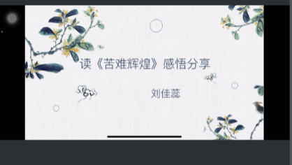 然后,刘佳蕊同学对全书作了全面梳理并汇报了读书心得,她总结到“我们作为新时代的传承者和建设者,要不忘初心、牢记使命,怀青衿之志、履践致远,栉风沐雨秉初心,砥砺奋进续华章!”