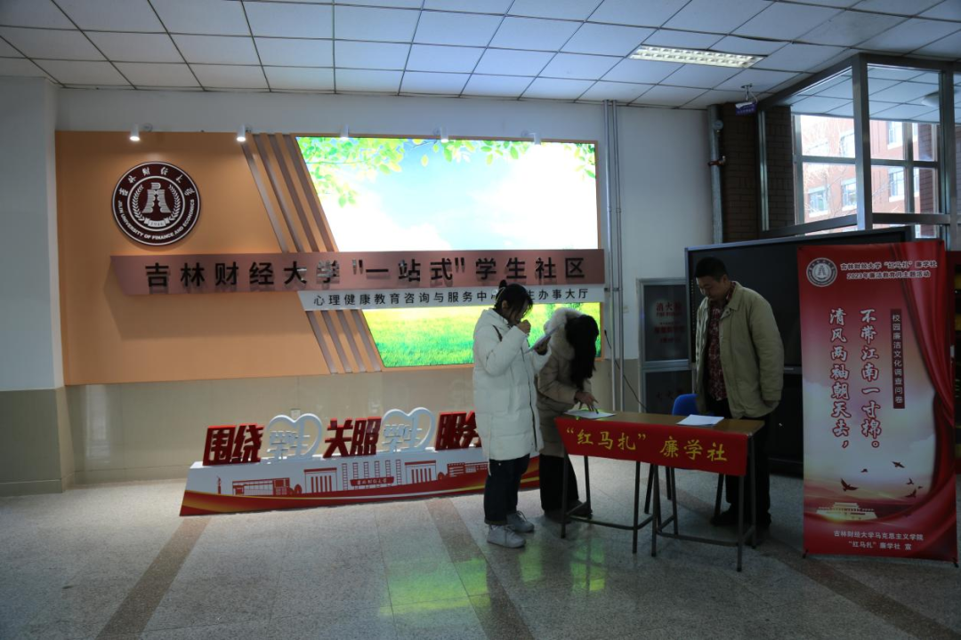 为贯彻落实中共中央办公厅《关于加强新时代廉洁文化建设的意见》精神,结合《关于开展2023年12.9全国大学生廉洁教育月活动的通知》要求,自拍偷拍 “红马扎”廉学社2023年11月28日在第一教学楼“一站式”学生社区和F厅开展廉洁文化问卷调查。学生辅导员魏泰龙、“红马扎”廉学社负责人、部分学生参加了活动。
