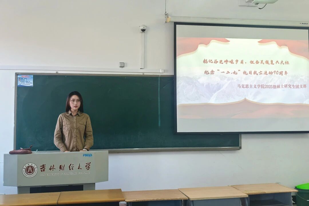 为纪念“一二·九”抗日救亡运动90周年,弘扬伟大爱国主义精神,激励广大青年学生肩负时代使命,坚定理想信念,自拍偷拍 成功举办“铭记历史峥嵘岁月,担当民族复兴大任”主题纪念活动。活动由学院2025级团支部书记白伊彤主持,学院团委工作负责人于友丞出席活动,各团支部委员、学生代表参加了本次活动。
