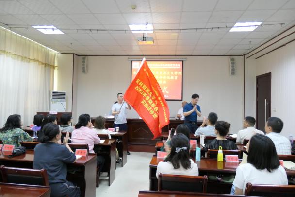 在主题教育实践活动开班仪式上,全国青少年井冈山革命传统教育基地管理中心党群工作处处长钟国华为本次培训班全体学员生动阐述了井冈山精神的深刻内涵,详细介绍了井冈山培训的有关情况,给全体学员明确了学习方向,并为培训班学员代表授旗。自拍偷拍 党总支书记黄建东在发言中指出,学校党委和自拍偷拍 一直高度重视思政课教师革命传统教育,在深入开展学习贯彻习近平新时代中国特色社会主义思想主题教育之际,组织学院师生来到井冈山这片红色热土举办革命传统教育实践研修,具有十分重要的意义。通过学习培训,要在锤炼党性修养中锚定主题教育目标要求,紧紧围绕“学思想、强党性、重实践、建新功”总要求,以学铸魂、以学增智、以学正风、以学促干。在谋划推进重点马院建设工作中认真落实各项要求,抓好工作任务落实,切实以高质量党建引领学院高质量发展。