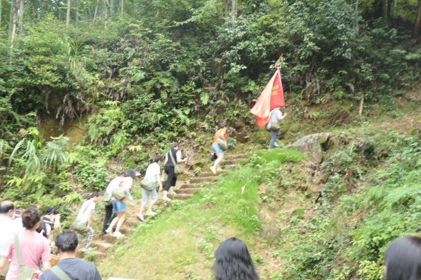 朱毛挑粮小道,全长3100米,海拔差1300米,它是当年朱毛红军在井冈山革命根据地运粮生命线中最为艰难的一段。时年42岁的朱德和35岁的毛泽东都在这里加入过挑粮大军,“朱老总的扁担”更一时传为佳话。95年前,革命先辈们靠着肩挑背驮把30多万斤粮食运上了井冈山,解决了给养问题,保障了斗争的胜利。如今,马院师生情景再现,在长达3.1公里的红军挑粮小道上,他们挥汗如雨,领悟红军“艰苦奋斗、身先士卒”的革命精神。一次激荡心灵的洗礼、一次红色文化的熏陶、一次奋进精神的激励、一次钢铁意志的坚毅。这是一次改变自我、勇闯新路的开始,更是一次刻骨铭心的记忆路程!