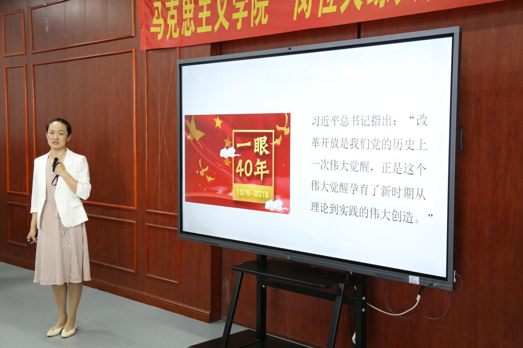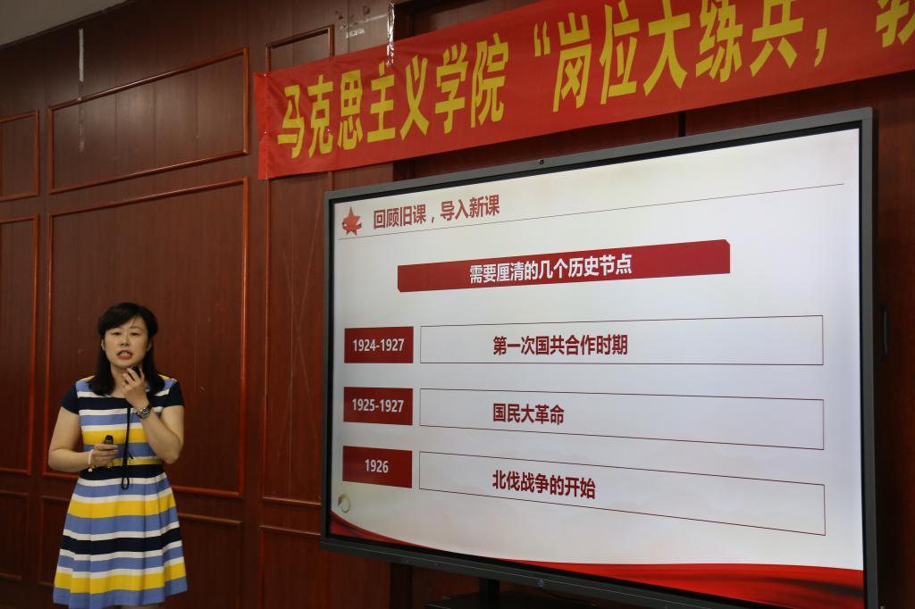 活动过程中,13位参赛教师围绕“党史”“新中国史”“改革开放史”“社会主义发展史”等内容依次登台授课。《1927——党史上的多事之秋》、《毛泽东地理》、《中华民族的革命精神》、《冰血鏖战长津湖》、《改革开放——伟大觉醒》等一节节精彩的思政课,生动再现了中国共产党百年党史的波澜壮阔。通过新颖多样的教学形式,深入浅出的讲解了所涉及知识要点和授课内容,展现了马院教师在思政课教学上扎实的专业功底和丰富的教学经验。