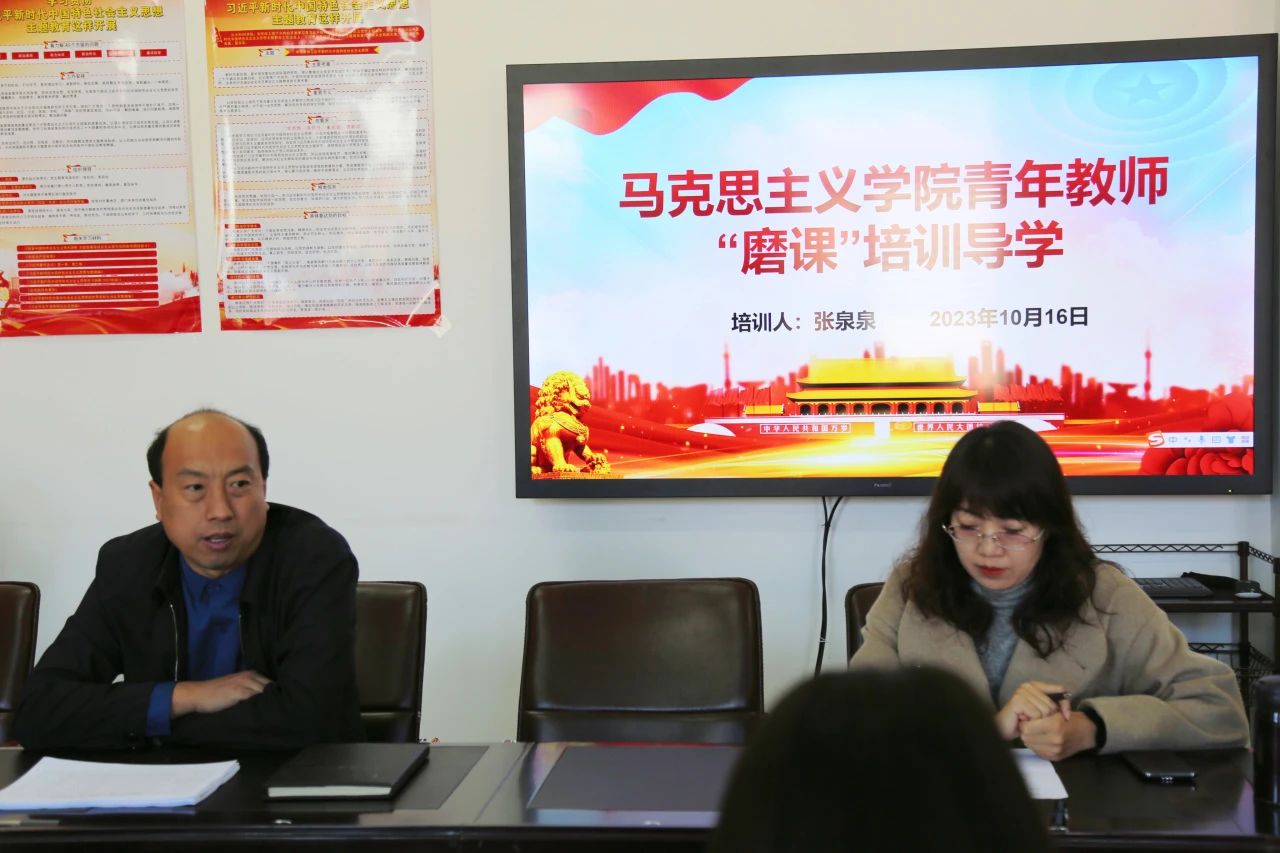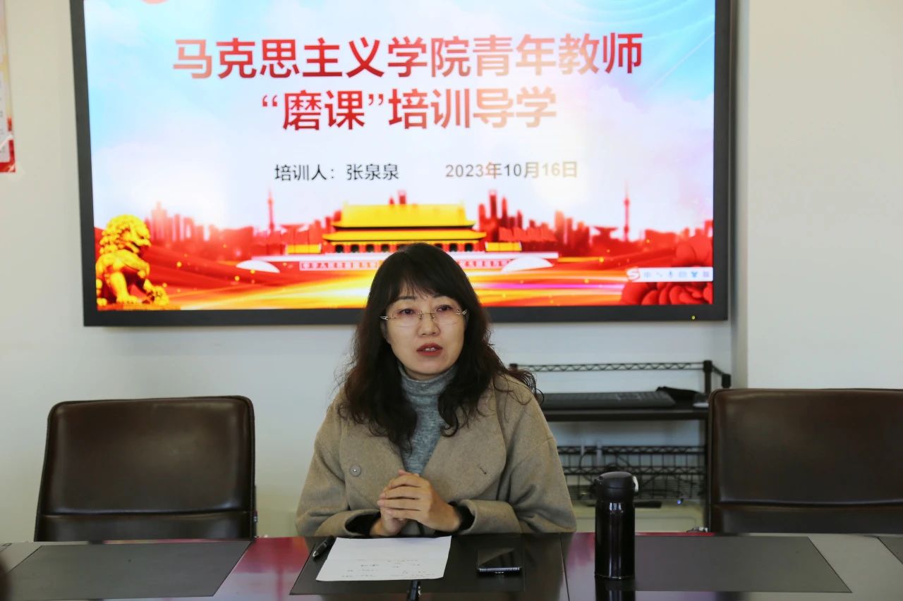 为推进实施“磨课”专项行动计划,学院邀请全国高校青年教师教学竞赛思想政治课专项组三等奖获得者、学院青年教师张泉泉结合刚刚获得的本科高校名师名家示范公开课成果和教学工作体会为10名青年教师开展培训导学。她首先从自己从教经历讲起,跟大家一同分享了心路历程。接着,她结合参加全国青年教师教学大赛的心得和收获,鼓励青年教师要敢闯敢试,重视每一次以赛代练的机会,在比赛磨练中不断提升自己的教学水平。最后,她结合初上讲台的心理建设和教学细节、日常阅读习惯培养、学习资料共建分享、团队合作能力提升等方面与10位青年教师进行了广泛深入的交流互动。