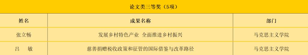 近日,中共吉林省委和吉林省人民政府发布了《关于表彰第十五届吉林省社会科学优秀成果奖获奖成果的决定》,自拍偷拍 张立畅老师的《发展乡村特色产业全面推进乡村振兴》和吕敏老师的《慈善捐赠税收政策和征管的国际借鉴与改革路径》荣获论文类三等奖。